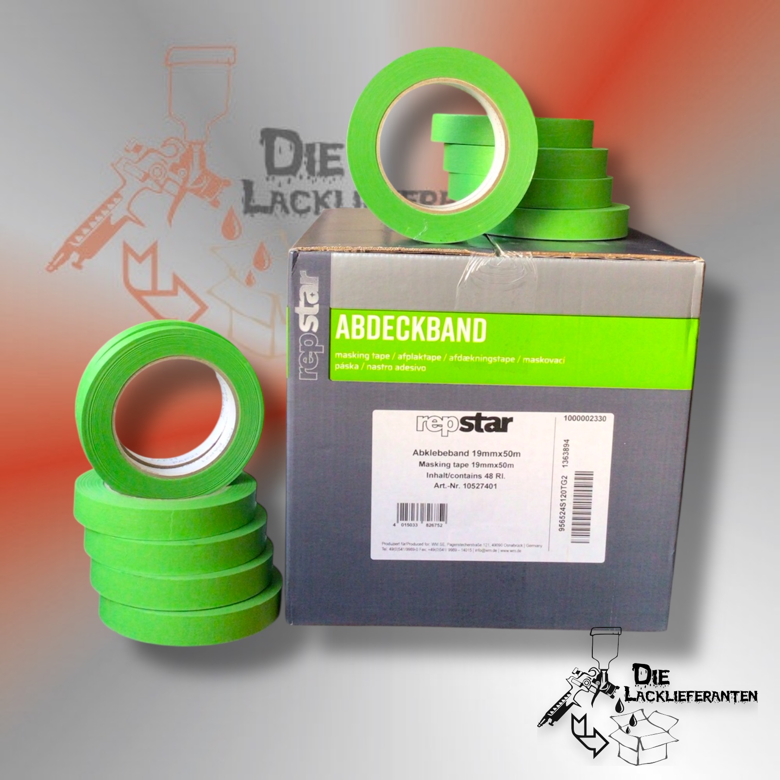 Enthält 20% MwSt.zzgl. Versand48x Repstar Klebeband Grün , Abdeckband 100°C 1 Rolle á 19mm x 50m #6660081
