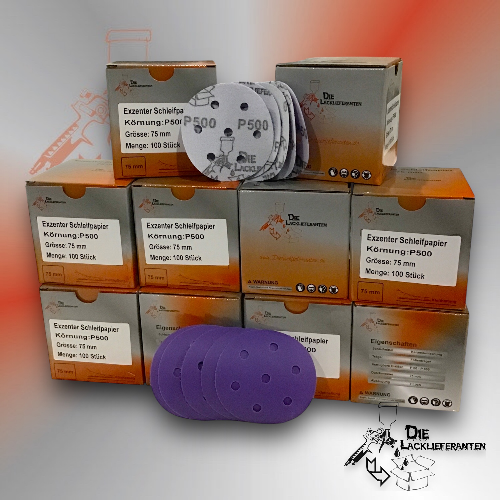 Enthält 20% MwSt.zzgl. Versand500X Exzenter Schleifpapier / Klett-Schleifscheibe P500 Ø 75mm Folienträger, 7 Loch Absaugung, Schleifkorn Keramikmischung #Q22T75P500