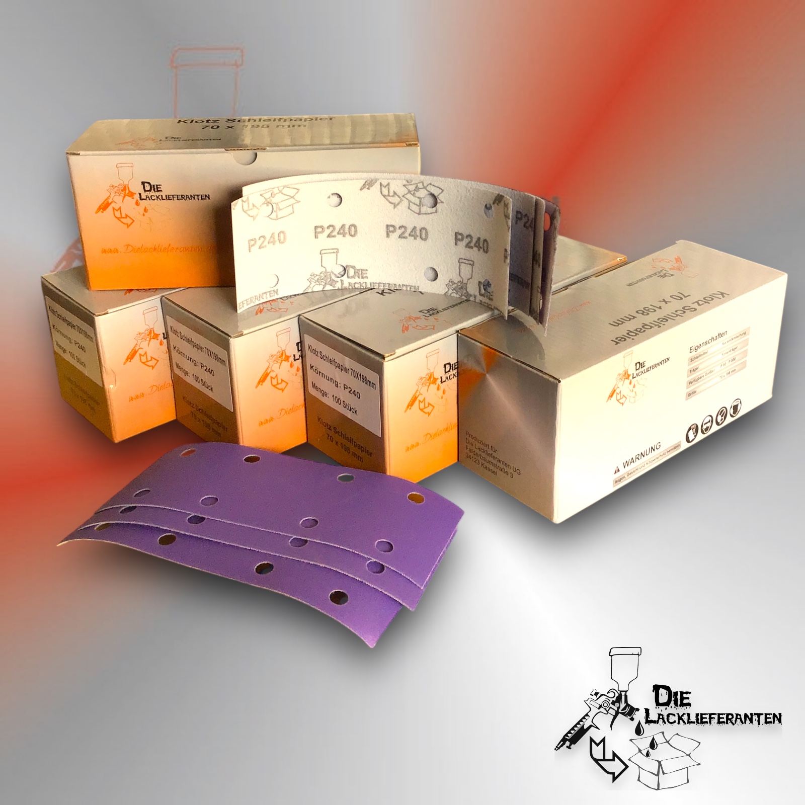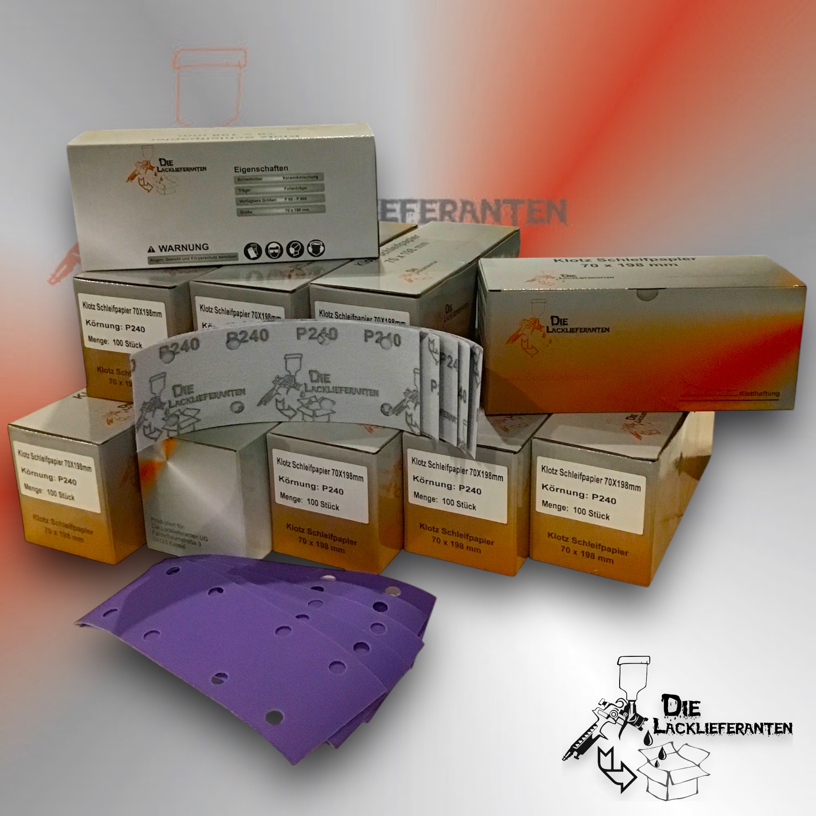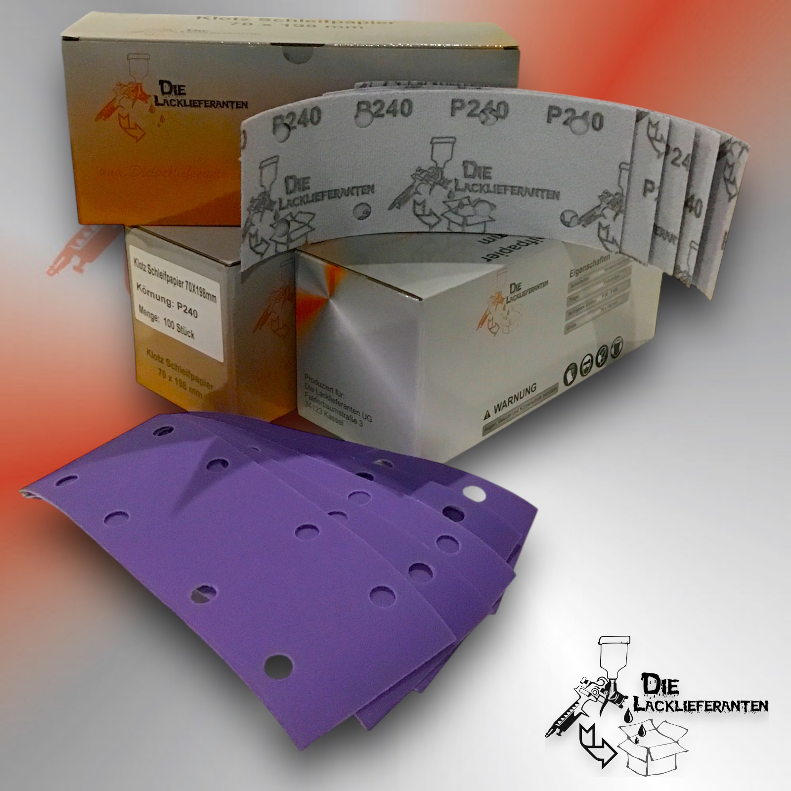 Enthält 20% MwSt.zzgl. Versand500X Klotz Schleifpapier / Klett-Schleifstreifen P240 70x198mm Folienträger, 8 Loch Absaugung, Schleifkorn Keramikmischung #Q22T70X198P240
