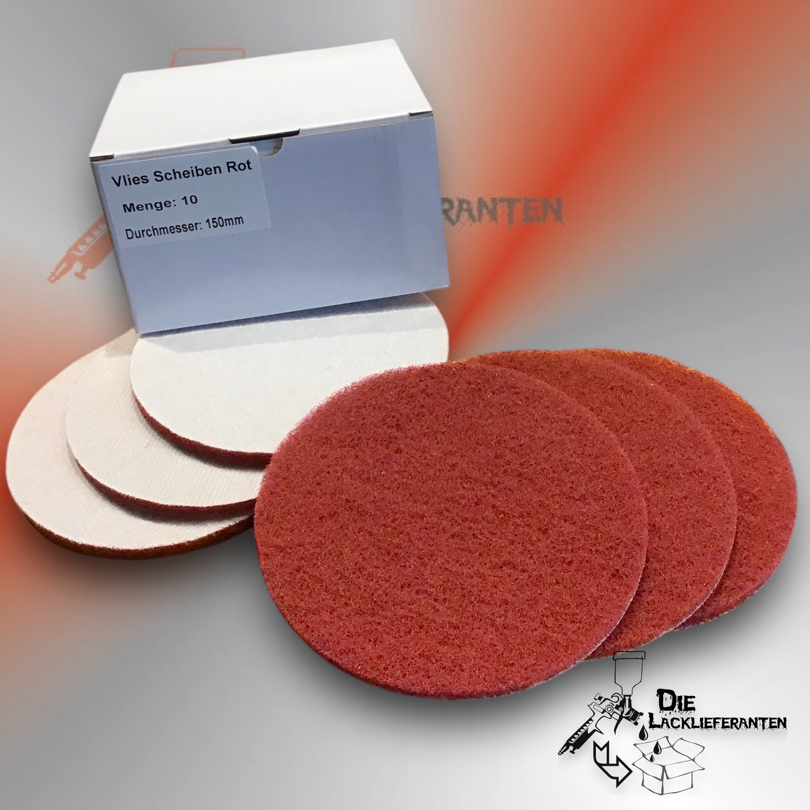 Exenter Schleifscheibe Vlies 150mm Rot 10 Stk. Mittel Fein #QAAM67150ROT