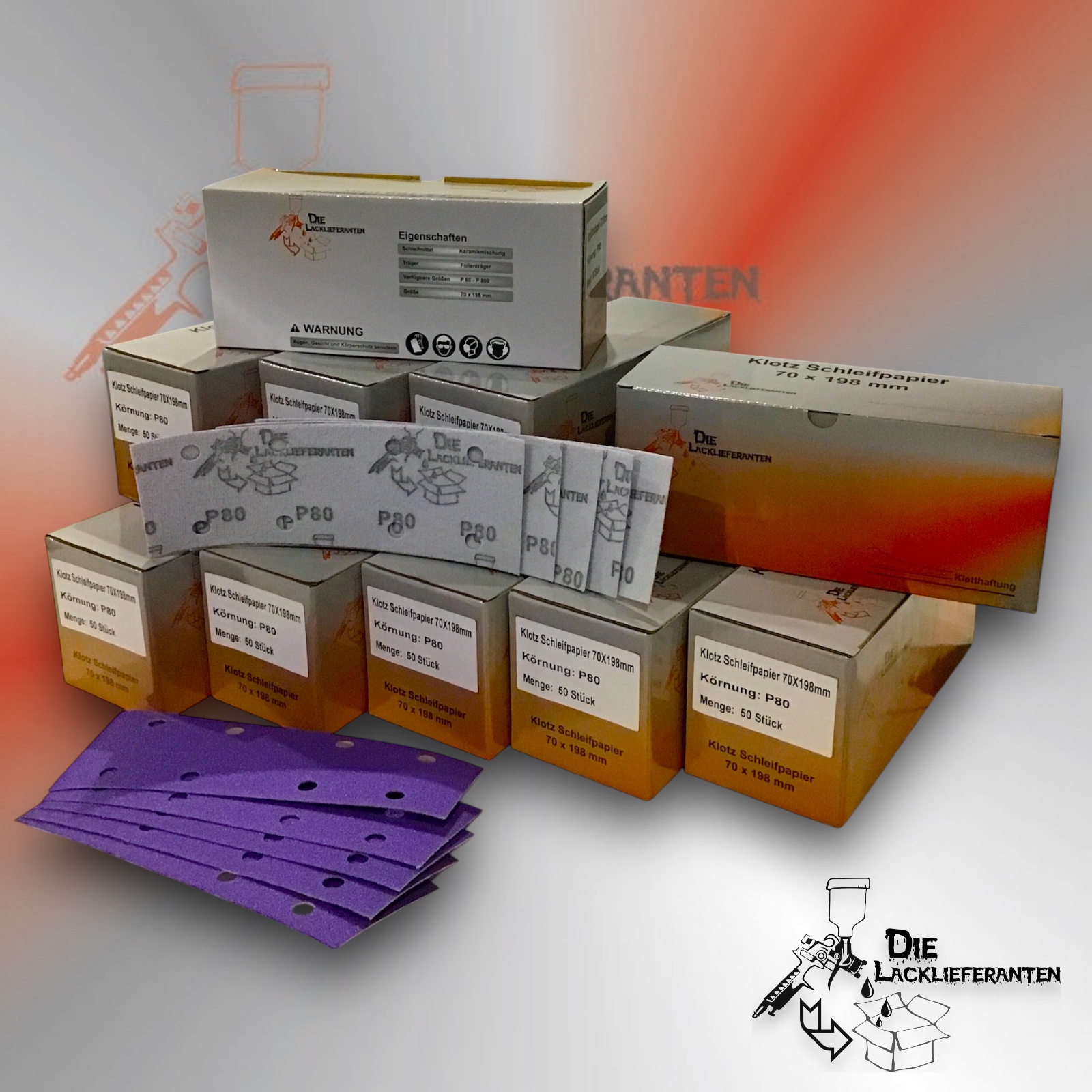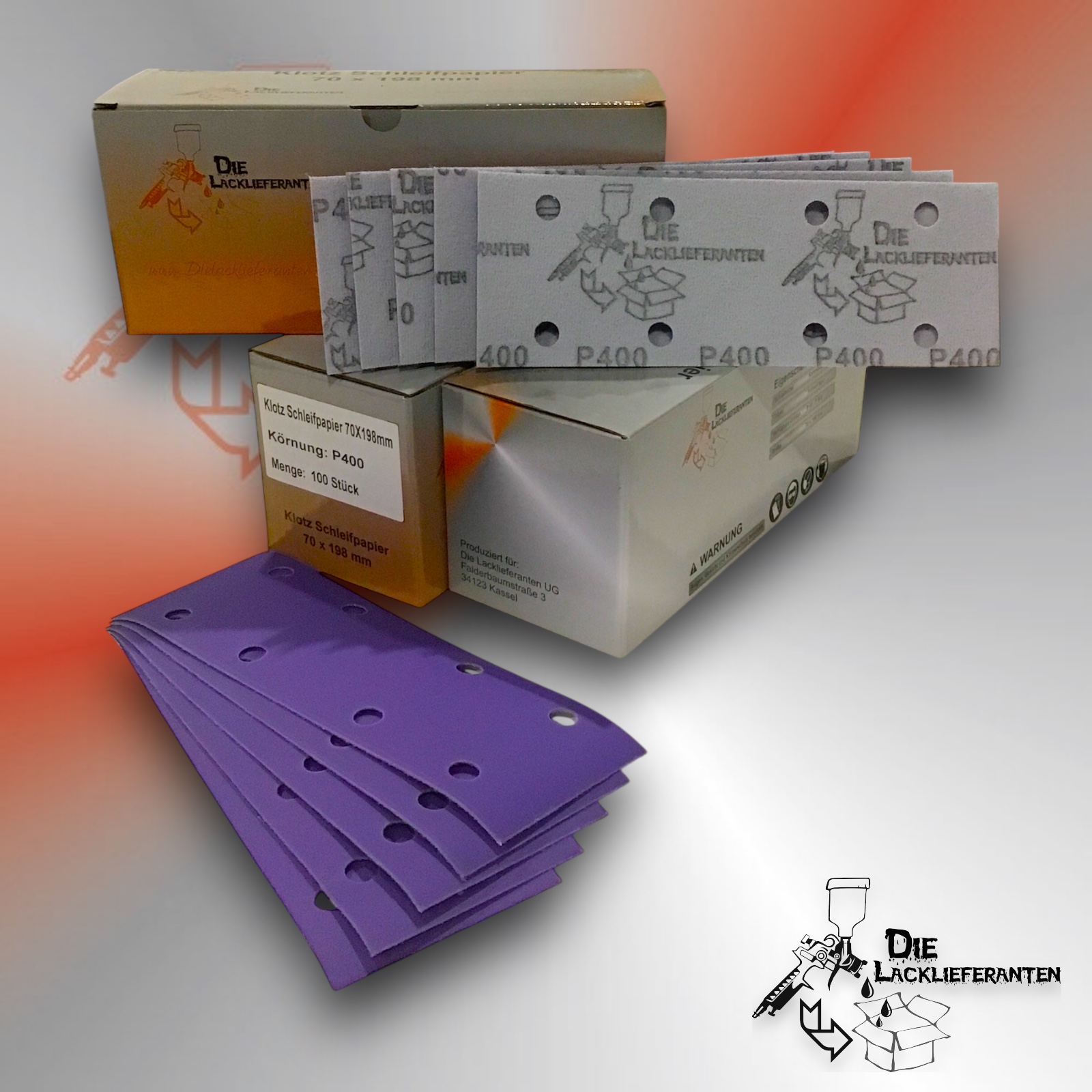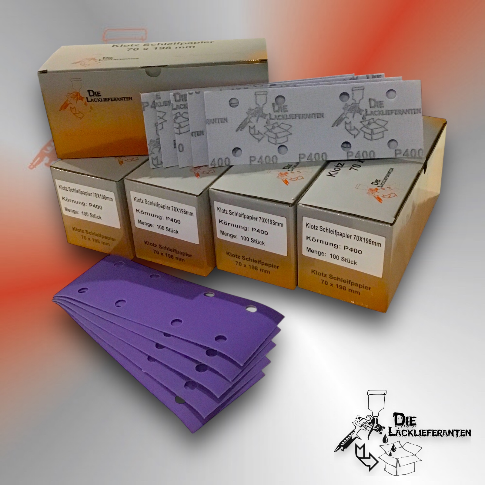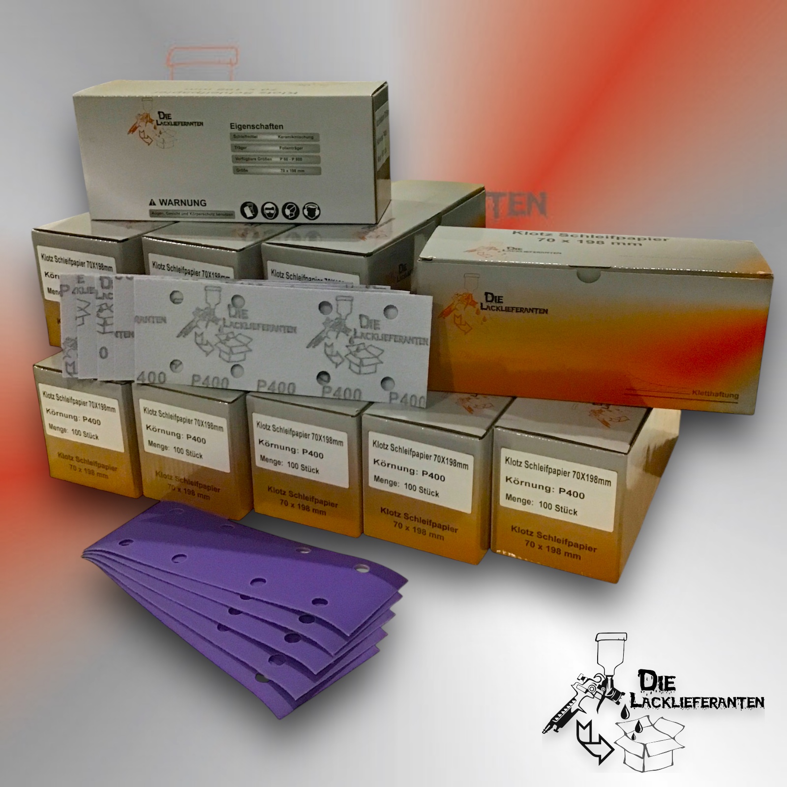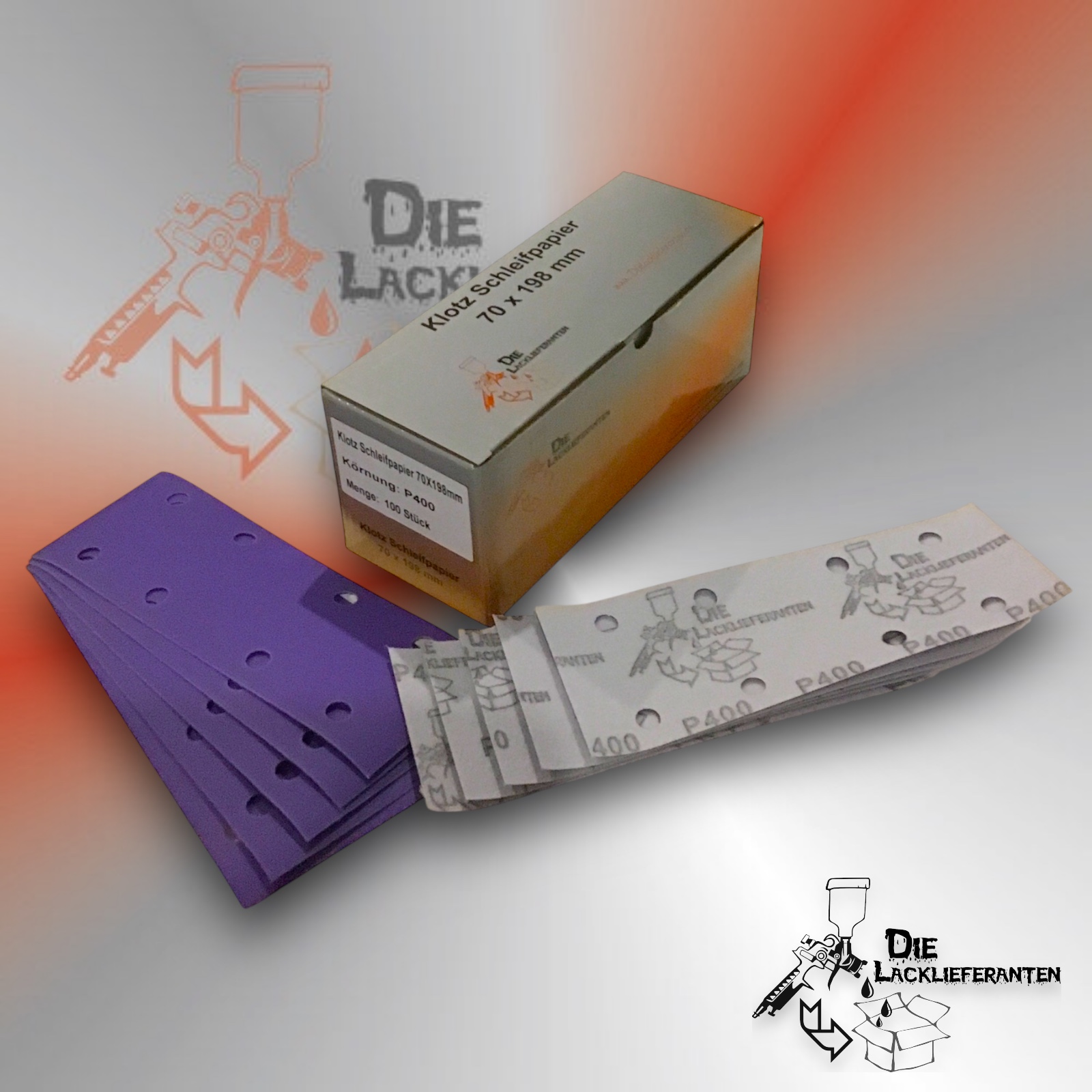Enthält 20% MwSt.zzgl. Versand300X Klotz Schleifpapier / Klett-Schleifstreifen P400 70x198mm Folienträger, 8 Loch Absaugung, Schleifkorn Keramikmischung #Q22T70X198P400