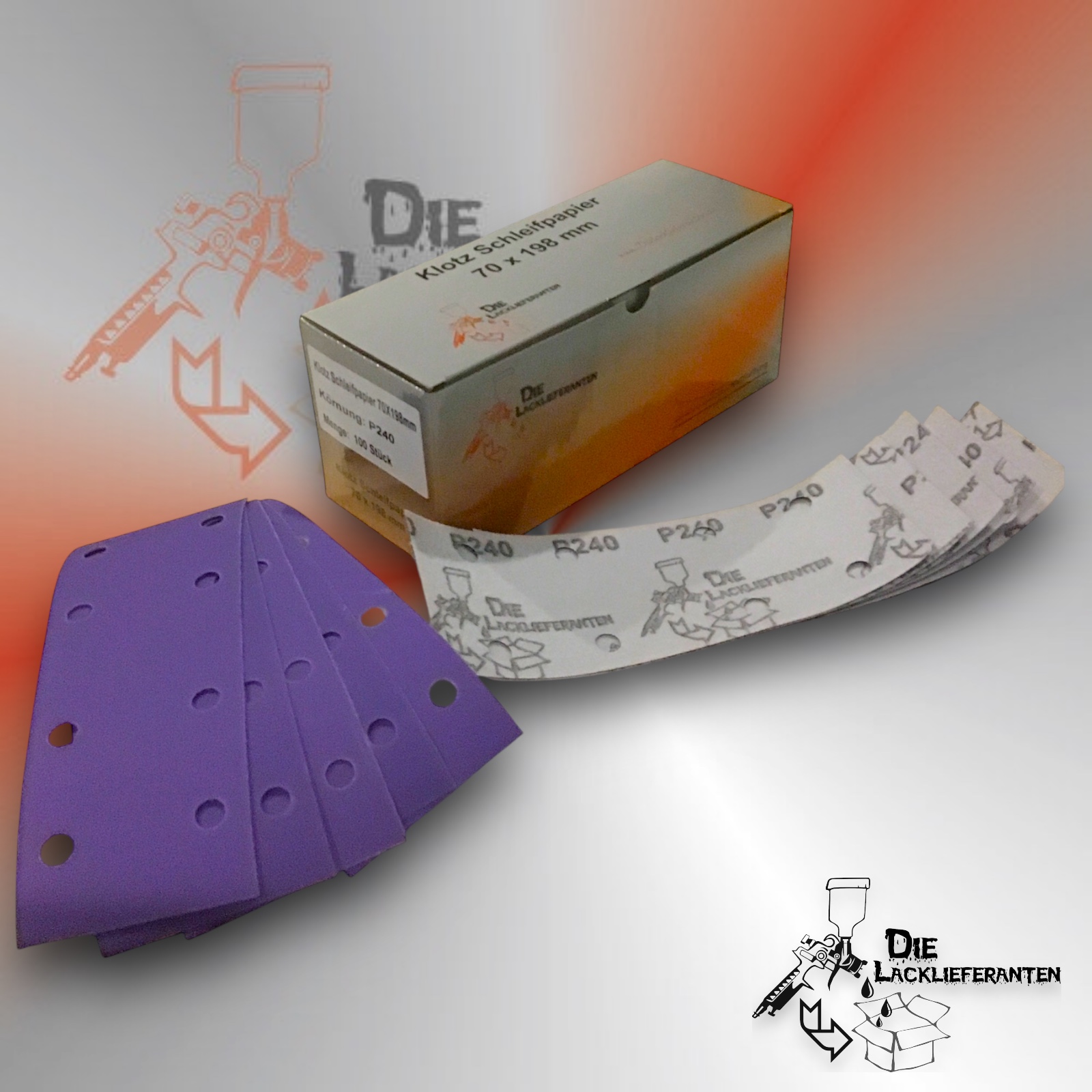 Enthält 20% MwSt.zzgl. Versand100X Klotz Schleifpapier / Klett-Schleifstreifen P240 70x198mm Folienträger, 8 Loch Absaugung, Schleifkorn Keramikmischung #Q22T70X198P240
