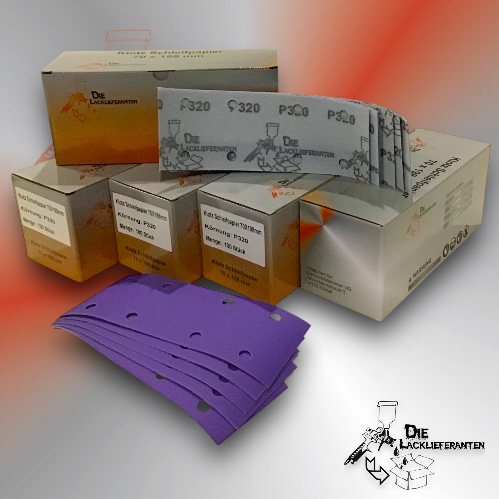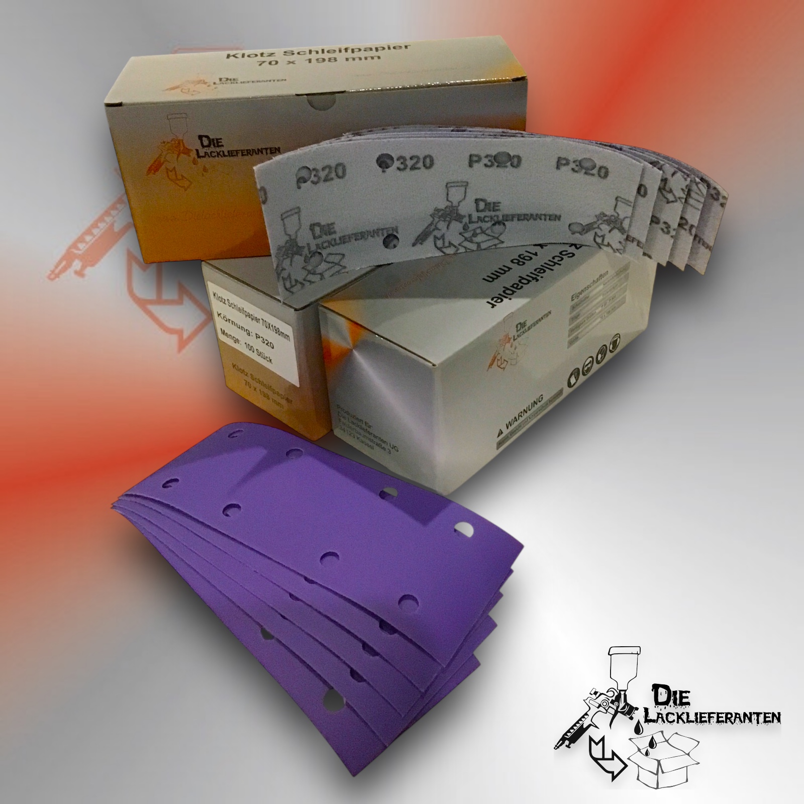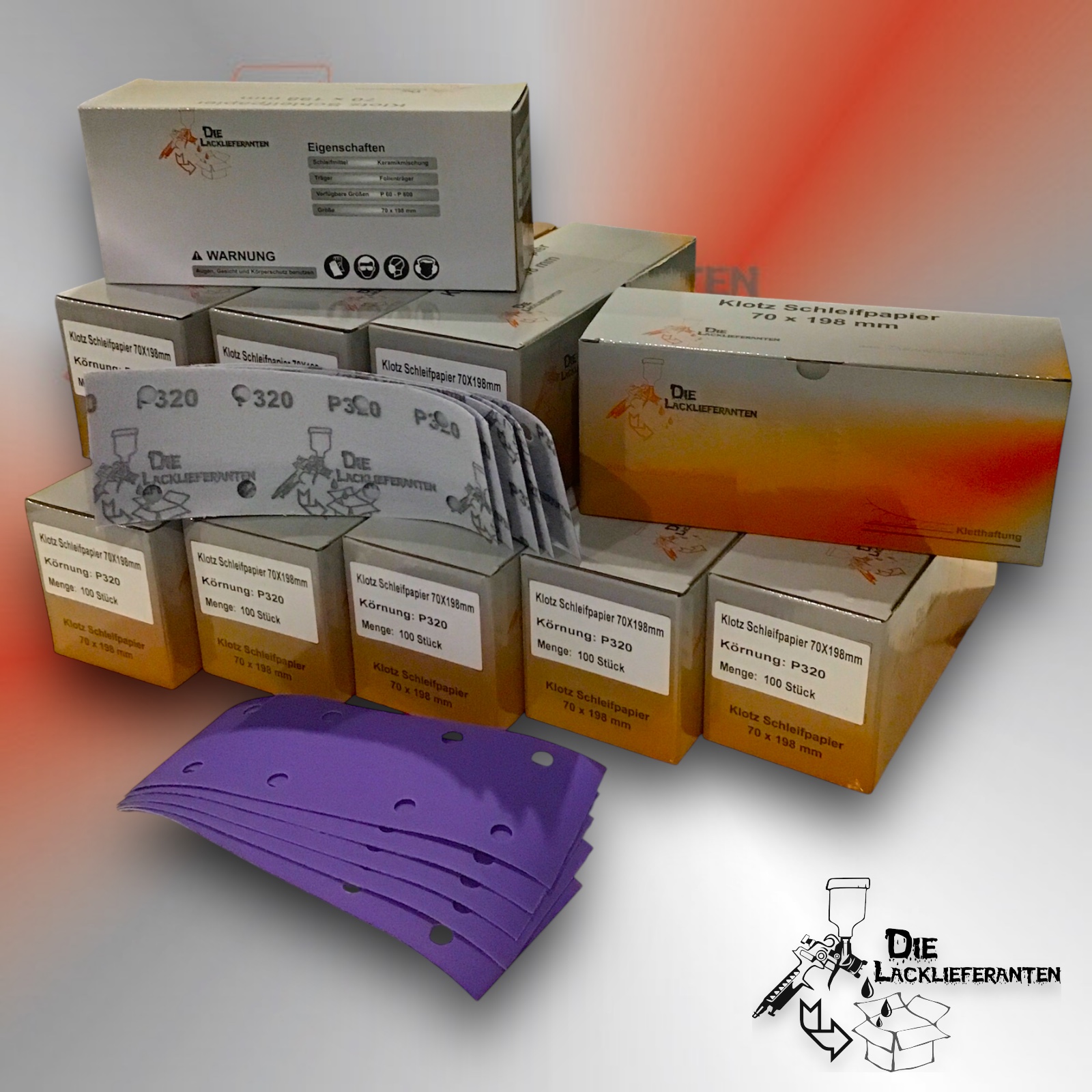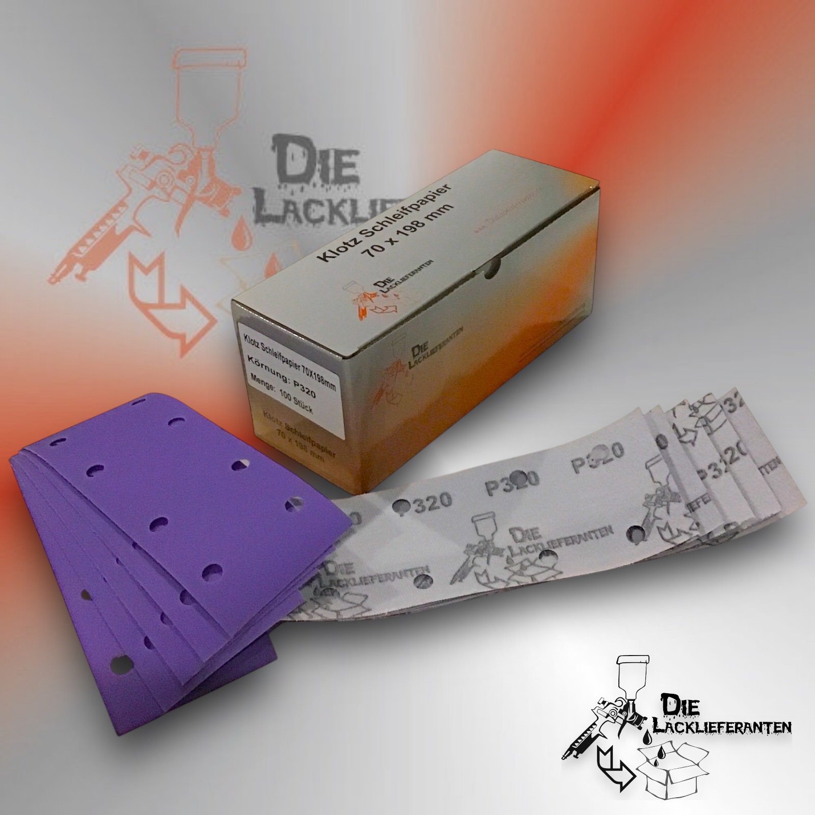 Enthält 20% MwSt.zzgl. Versand300X Klotz Schleifpapier / Klett-Schleifstreifen P320 70x198mm Folienträger, 8 Loch Absaugung, Schleifkorn Keramikmischung #Q22T70X198P320