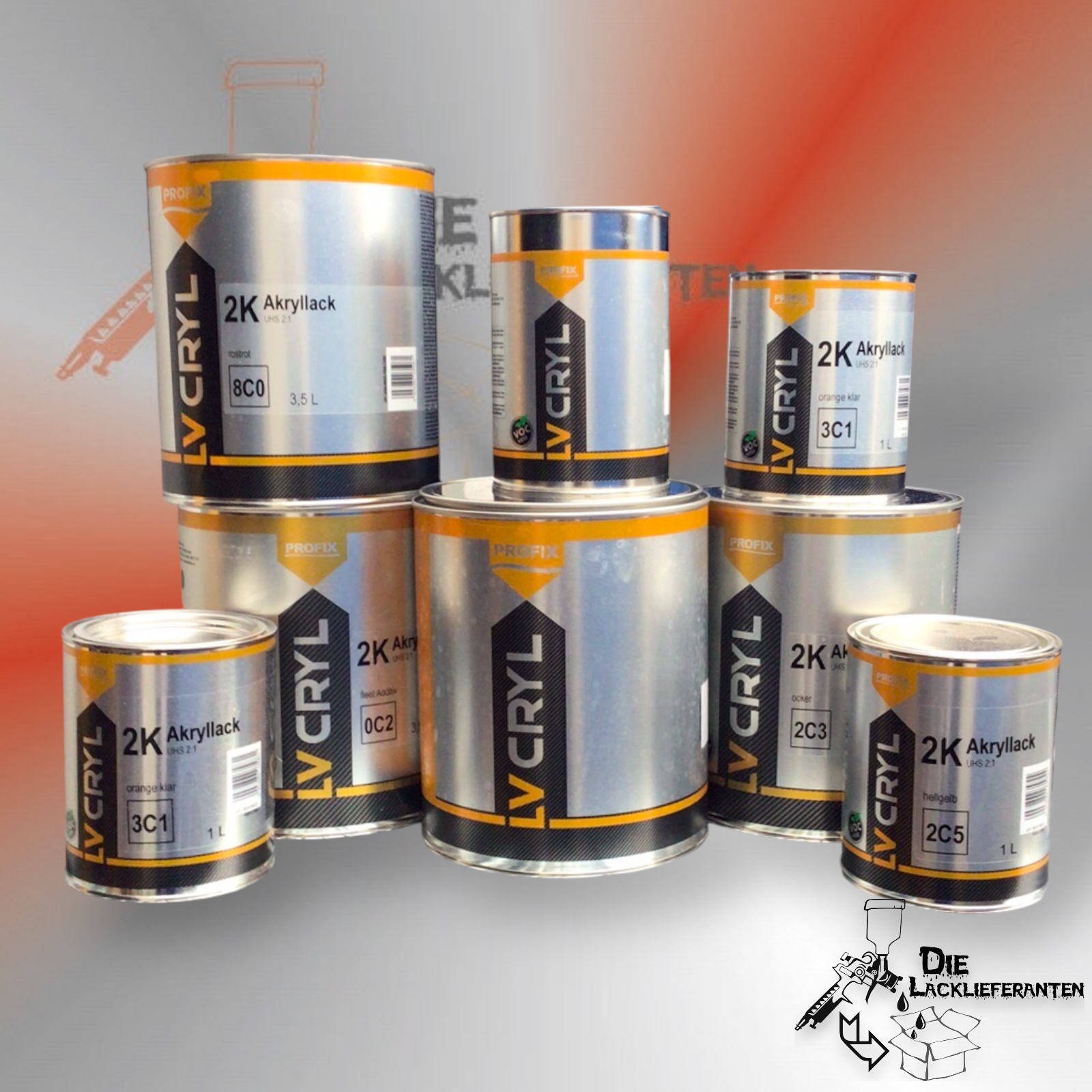 Enthält 20% MwSt.zzgl. VersandProfix LV Cryl 2K PU-Decklack Uni Wunschfarbton Readymix 1 Liter # ALVReady1